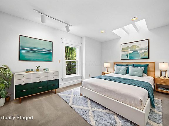 RARE OPPORTUNITY in the prestigious ''Circles'' of Dennison Place. Set on a picturesque, tree-lined street with limited access, this spacious Century townhome blends historic elegance with modern updates. Renovated in the 1990s and meticulously maintained by one owner, it features intricate woodwork, and soaring ceilings, preserving its architectural character. The inviting 1st floor offers a bright open living/dining area with 9-ft ceilings, cozy fireplace, half bath, laundry, and abundant natural light. The oversized kitchen boasts oak cabinetry, exposed brick, beamed ceiling, and a 3-panel atrium door to a private deck and garden. The 2nd floor includes a library/den with fireplace, exposed brick, and beamed ceiling; a bedroom ensuite with skylight and full bath; plus a 2nd bedroom with generous closet space. The 3rd floor is a stunning owner's retreat with cathedral ceiling, skylights, walk-in closet with built-ins, and a luxurious spa bath with sauna, jetted tub, high-pressure shower, and skylights. A loft with skylight offers flexible space. The finished lower level features a large rec room with wet bar, half bath, and storage. Outdoor spaces include a welcoming front porch, private garden, and a spacious 2-car garage. Available separately or with 422 W Sixth Avenue for a unique owner-occupied investment or single-family residence with over 7,000 sq ft combined. Prime location near OSU, Battelle, Short North, Downtown, and Grandview Heights—with the chance to add your own modern touches. Historic charm, modern comfort, and unmatched detail—Urban living at its finest!