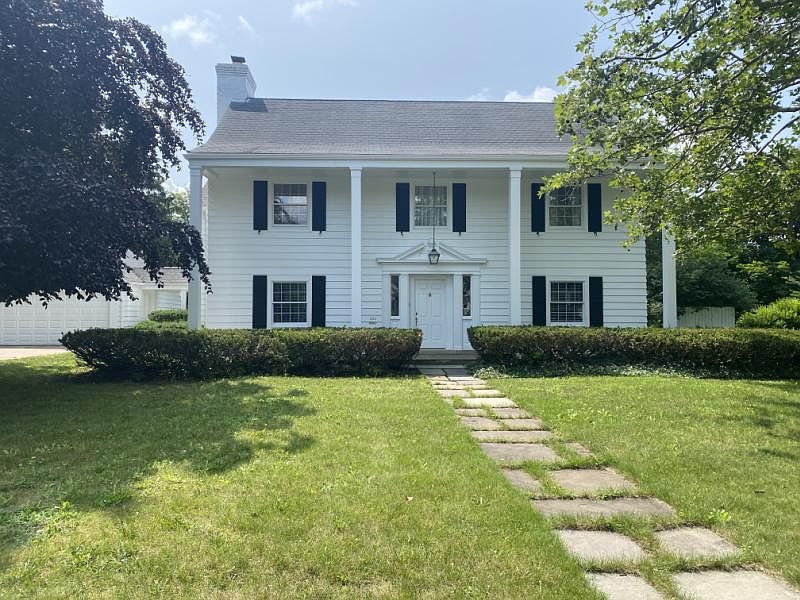 Introducing this must see beautiful stately home. This home features hardwood floors throughout with eye pleasing architectural detail, custom cabinetry, woodwork and built-ins. The front entrance boasts a lovely tiled vestibule and cedar closet. This 3 bedroom, 2.5 bath home offers a vast number of updates. The kitchen features quartz countertops, a quaint breakfast nook and large pantry. The formal dining room showcases two unique arched custom built-in cabinets, elegant (original to the home) grass-cloth wallpaper and a crystal chandelier, the perfect place to host a gathering. The large living room welcomes with a wood burning fireplace, an abundance of natural light and crown molding. The den/office offers serene warmth surrounded by gorgeous custom wood walls, built-in bookshelves, and a bay window overlooking the backyard. Enjoy the privacy of your large fenced-in backyard from the screened-in-porch easily accessed from the den. From the grand foyer head upstairs to a wide hallway landing where you will find a nice cedar closet, a linen closet with built-in drawers and shelves and an additional closet for your storage needs. All three bathrooms have been beautifully renovated and are sure to please. One half-bath bathroom is situated on the main floor and two are located upstairs. The spacious primary bedroom suite offers large closets, new windows and highlights a bathroom with a new vanity, tiled shower, and a large claw foot soaking tub. The other two bedrooms also feature new windows, fresh paint and nice size closets. The newly restored balcony off the second bathroom is unique to the home and a wonderful place to sit and relax. There are two laundry shoots for ease in getting your laundry to the basement. The basement is large and clean and a great place for extra storage. Don't forget to check out the attic space, yours to get creative with. Lastly a covered breezeway leads to the 2-car garage and allows you to stay dry getting to and from your vehicle. Don't miss out on this gem of a home. Close to the schools, parks and restaurants. Call today for your private viewing.