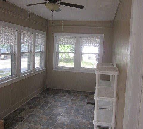 This is a three bedroom, one bathroom home that sits on a corner lot and would be great for any family. There is an awesome enclosed front porch that has a ceiling fan, so you are able to sit outside and enjoy the room all through the summer. The living room opens directly into the dining room, and both rooms have newer carpeting. All appliances are included in the kitchen. The three bedrooms are located on the second floor of the house. There is a spacious backyard with a two car garage.