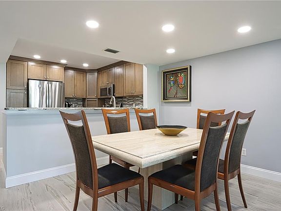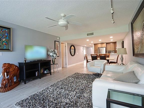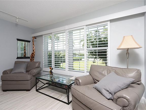 Right in the heart of the Naples area and so close to everything the City has to offer! Totally renovated first floor condo boasting all luxury modern features and appointments throughout. The owner has spared no expense in the reimagining of this residence. Contemporary style decor of neutral tones with accents of rich colors throughout. Solid surface tiled flooring in all living areas with area rug in the living room and carpeting in the bedrooms. The screened lanai has also been glassed enclosed for year round comfort (not that the weather isn't always perfect!). Sofa, chair plus two extra sitting chairs in the expansive living room. The marble dining room table seats six. Every creature comfort has been provided to make a tenant's stay more convenient and enjoyable. Amenities include a heated pool, poolside sauna & shuffleboard courts and social club room. Conveniently located to fine shopping, dining, entertainment and the beach.