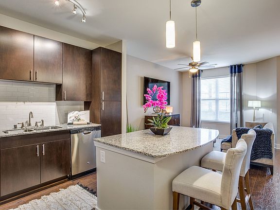 - Exterior features: * Only available in select apartments, 42-inch Espresso Wood Cabinets, Barbecue, Built-in Desk*, Built-in Wine Storage*, Chef-Inspired Kitchen, Community Fire Pit, Cycle Room, EV Charging Stations, Game Room, Golf Simulator, Granite Counters, Package Receiving, Pet-Friendly with Limitations, Preferred Employer Discount, Short Term Lease, TV Lounge, USB Charging Ports *
