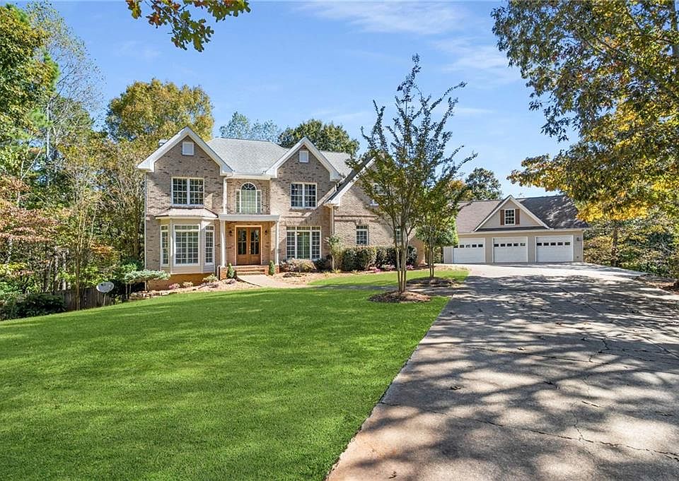 Situated amongst rolling hills and acres of colorful Fall foliage is this beautiful, four-sided brick estate on nearly 11 acres. Meander through the gated entry and down the private, tree-lined driveway until you arrive at this stately homestead. Walk through the new double oak doors and you're greeted by soaring ceilings, a freshly painted interior, gleaming hardwood floors and large spaces. The entry is flanked by a spacious home office or formal living room to your left and formal dining room to your right. The heart of the home is just ahead - an open-concept fireside family room, breakfast area and large kitchen. The kitchen features 42" white cabinetry, granite countertops, stainless steel appliances, a butcher block center island and a spacious walk-in pantry. This level is completed by a convenient powder room and two-car garage with high-end epoxy floor coating. Retreat upstairs to the bedrooms where you'll find a spacious master suite, three generously-sized guest bedrooms (all with new carpet and paint), a large shared bath with multiple sinks and a convenient upstairs laundry room. The master suite is the perfect spot for relaxation highlighted by a double tray ceiling, large sitting area, dual walk-in closets, hardwood floors, a private rear covered porch and a spacious ensuite bathroom. The bathroom features dual vanities, a large whirlpool tub, a walk-in shower and a separate toilet closet. You'll love entertaining in the finished basement. With tons of square footage to create your ideal layout, there's a large living area, a bedroom, a full bath, two additional rooms (that would be perfect for a game room and a home gym) as well as an ample storage closet. One of the crown jewels of this property is the detached three-car garage with a huge unfinished bonus space above. Create the perfect man cave, home office, hang-out space, or whatever your heart desires. The property is nearly 11 acres and, with no HOA, you have the ability to create your own oasis. Chickens? Sure! Hunting? Why not! Car collector? No problem! A tankless hot water heater, recently serviced septic system, newer HVAC's and well with saltwater softening system and filter are added bonuses. Conveniently located just 6 minutes from historic downtown Ball Ground, 20 minutes to Jasper and less than an hour to Blue Ridge or Atlanta, you'll love being away from the hustle and bustle while still having access when you need it. Zoned for top-rated area public schools like Creekland Middle and Creekview High!