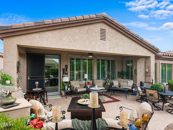 Do not let this one get away! Enjoy this impeccably cared for home in sought after 55+Trilogy community! Great room features built in entertainment center, view windows to the gorgeous backyard, crown moulding & plantation shutters. Spacious kitchen has stainless appl, gas cooktop,bar seating, pendant lights & pantry. Large primary suite features a bay window, walk in shower, dbl sinks. Split bedroom plan perfect for privacy. Extended size guest bedroom perfect for guests or family with adjoining bathroom w/walk in shower.The beautiful backyard has wonderful mature landscaping, multiple seating areas, built in bbq, covered patio. Amenities in this 55+ resort community include two swimming pools and a spa, tennis, pickleball, fitness center,public golf course plus on site restaurant & bar