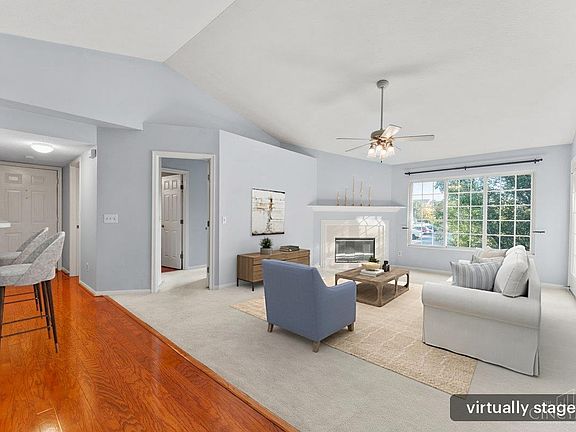 Living is easy in the Yacht Club! This top-floor condo combines style and updates with an open floor plan, vaulted ceilings, and hardwood floors balanced by cozy carpet. The inviting living room features a fireplace, while the bright kitchen offers a counter bar and opens to the dining area for easy entertaining. The primary suite boasts soaring ceilings, a spacious walk-in closet, and a refreshed bathroom (2024) with tile flooring, a stunning shower, and modern finishes. Additional features include a desired detached garage with storage, extra attached storage closet, in-unit laundry (washer and dryer included), and a covered deck. Enjoy resort-style living with a pool, tennis, manicured grounds, and HOA coverage for water and trash. Conveniently close to highways, shopping, and dining - welcome home!