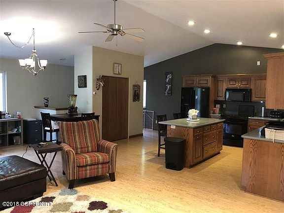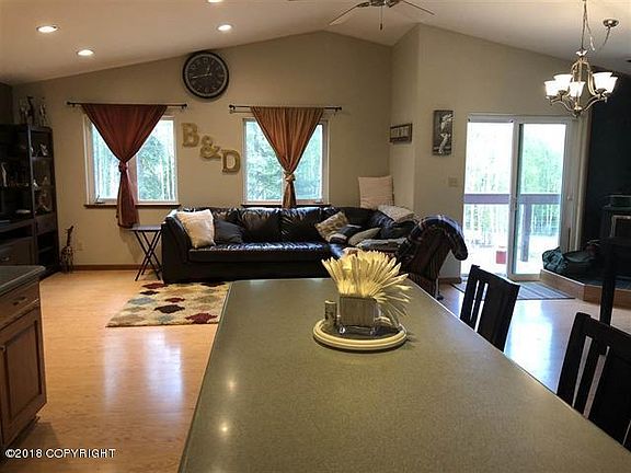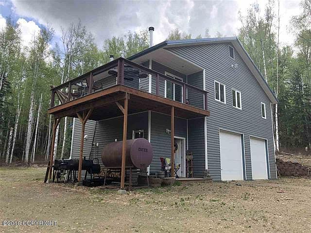 Wow! Mechanics Dream!!!! Beautiful private setting on almost 5 acres, nestled in tall birch trees. You don't want to miss this one. Energyefficient and 5 star plus when built, Burderus Boiler and radiant heat throughout, an AMAZING oversize 1556 sf. garage with 3 bays, 11 ftceilings and 10 ft. garage doors. The 3rd bay has a 12,000 pound vehicle hoist/lift, and a 175,000 BTU waste burner that can be used as supplementary heating source, and a commercial air compressor, all yours with a full price offer. There is a 1/2 bath downstairs. Wonderful open floor plan with vaulted ceilings and lots of large windows in the main living area, corion counter tops, custom cabinets that have deep drawers and self closing hinges, under cabinet lighting, top of the line appliances and fixtures. Large pantry. Awesome Princess blaze king wood stove to help supplement your heating costs, there are 2 large bedrooms, a marble tiled bathroom, and a hall storage closet. The sliding glass doors leads you to a cable rail wrap-around trex deck to enjoy the sunsets and bbq. Great Quality! 1500 gal water tank. Check with GCI rumor has it that fast internet will be there end of May.