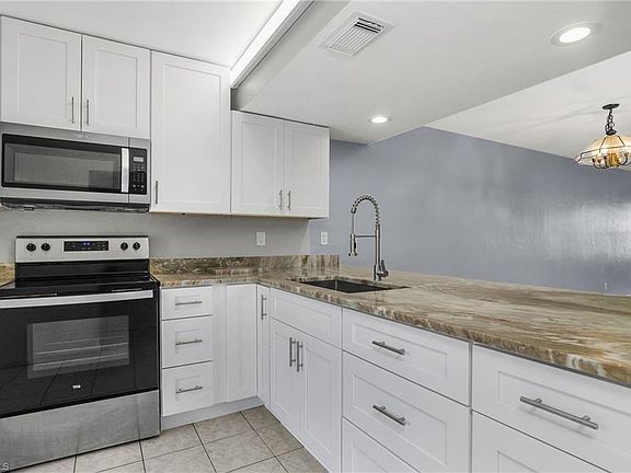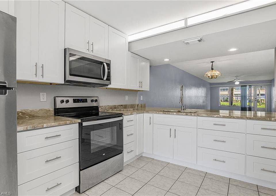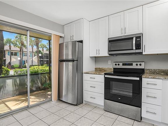 Welcome to your dream condo close to Beautiful Downtown Naples and Downtown Naples' Beach! This stunning 2 bedroom, 2 bath condominium with Open Floor Plan and Split Bedrooms offers a remodeled kitchen with upgraded Granite Countertops, sleek newer modern Appliances and ample storage space with plenty of drawers and open to a large Great Room for Entertaining! Both Bathrooms have been tastefully updated with new vanities topped off with Beautiful Upgraded Countertops providing a spa like retreat! The condo also features a large convenient outdoor storage for bicycles or beach toys which is perfect for enjoying Florida's sunny lifestyle. The community is complete with a Clubhouse, Resort-Style Pool, and a lovely walking trail ideal for relaxing, and tennis and pickleball courts for the active enthusiast! 1 pet is permitted!