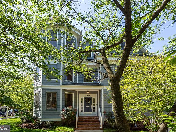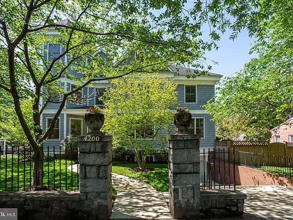 SUNDAY, 7/12 OPEN HOUSE IS CANCELLED. A true walker's paradise and prominently situated on a corner lot with 6 spectacular cherry blossom trees, this almost 4,000 sf, 5 bedroom plus den/bonus room, 4.5 bath semi-detached *SMART* home is perfectly located just 2 blocks from all that Friendship Heights has to offer. Striking ceiling heights and an impressive number of windows create many open and sun-filled spaces throughout the home. The main level features a spacious kitchen that overlooks the private patio and fenced-in yard. Sizable dining and living room spaces with beautiful custom built-ins are perfect for entertaining. With stunning views of the cherry blossoms, the master bedroom suite on the second floor was designed to ensure privacy from the other rooms on the same floor (2 bedrooms, storage, laundry, and full bath). One large bedroom, a bonus room + den, a full bath, storage, and treetop views of Chevy Chase complete the top floor ~ perfect as an in-law suite. The lower level features a 5th bedroom with ensuite full bath, a cozy rec room/theatre with surround sound and gorgeous built-ins, 2 generous storage closets, and access to the attached garage and driveway. The brand new sprinkler system, central vacuum system, newly painted exterior, home sound system, recently replaced furnaces, refinished main-level hardwood floors, new black stainless steel refrigerator and dishwasher, and the new deck off the kitchen are just some of the thoughtful updates this lovely home offers. 4200 Military Rd is situated less than 3 blocks from Metro's Red Line, 4 blocks from the nearest Whole Foods, and steps from Friendship Heights' shops and restaurants. Its prime location offers easy commuting access to all points in the city and beyond. In bounds for Janney Elementary, Deal MS, and Wilson HS.