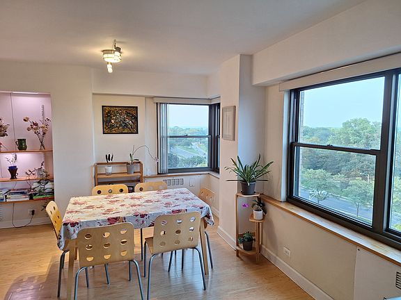 Stunning and tranquil lake and park views from 9th floor in Buena Park. This 3 BR, 2 full baths condo has a spacious floor plan (1,450 sq. ft. ) that includes a large living room / dining room combo and nice size bedrooms, with great views from every window, South, East, North and West. A great location right next to the jogging / bike path and the lake, steps from the Buena Park / Lake Shore Drive underpass with access to Montrose Beach Dunes Natural Area, Irving Park Marina / Bird Sanctuary and trails. Great closet space, a newer exercise room, party room, seasonal patio with tables and chairs. This is an impeccably maintained building, with on-site engineer. CTA bus stop at the front door. Second bathroom is handicap accessible. Renter pays for electricity, cable and parking. Owner pays for the other utilities. Dog size is up to 70 lbs. Lease duration is 1 year, renewable by mutual agreement.