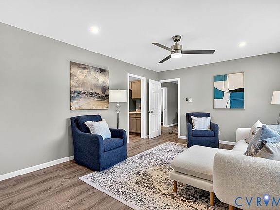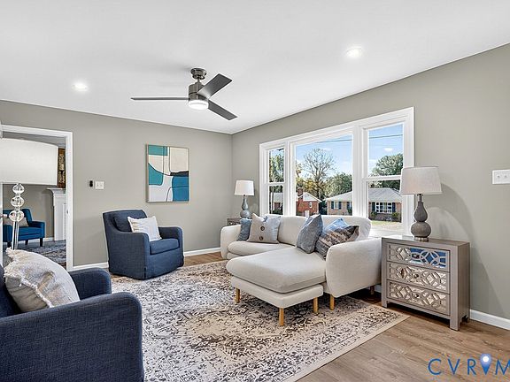 Cozy fireplaceNew heating systemRecessed lightingCeiling fansFront yardNew floorsNewly painted walls