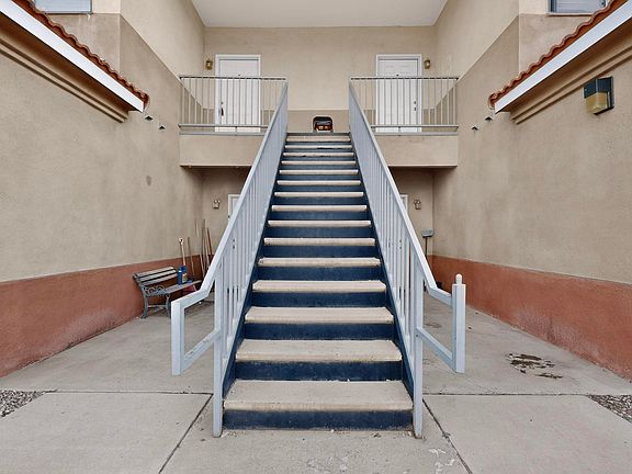 Lovely 2 bedroom 2 bath upstairs unit w/ in-unit washer/dryer + Refrigerated air! New LVP flooring throughout, freshly painted. Open floorplan with cathedral ceilings and large living area with gas fireplace. Kitchen features a gas stove and includes a dishwasher, microwave and refrigerator. Rear balcony patio has additional storage closet. Very central location accessible to ABQ or Rio Rancho. Move-in ready!