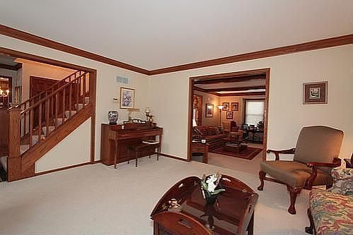 Seller's downsizing brings great opportunity for a new buyer to enjoy this home as well! HWF's, ceramic, double crown mouldings, Mission-styled staircase in the 2 story foyer, multiple pantries in the kitchen are part of what this home offers! Roof, siding, windows, shades & main bath have been updated. Spacious MSBR suite with 2 walk-in closets! LL finished room, too. Family/Great Room w/beamed ceiling & NFP w/gas starter. Great deck overlooks nice backyard w/mature trees. Home Warranty included!