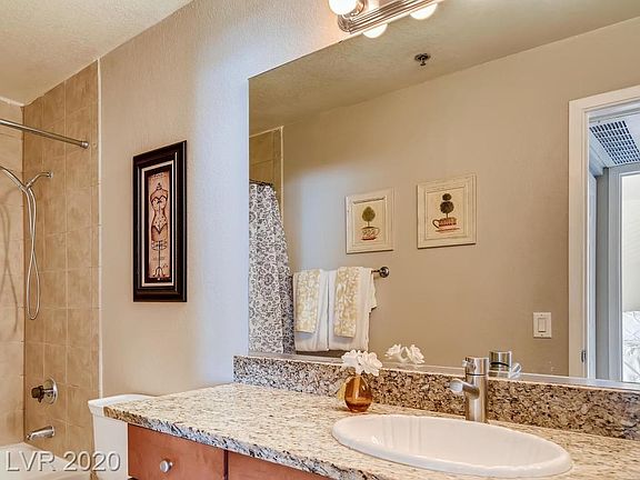 Great location - minutes to Strip and Raiders Stadium. This 2 bedroom 2 bathroom unit on the 2nd floor is upgraded with newly installed manmade wood flooring throughout and newly painted. GUARD GATED, the community has a gorgeous pool, spa, BBQ Area, Exercise Room and a Clubhouse. Quality furnishings complete with kitchen necessities. MOVE-IN READY. The unit is located in Building C, one of the better located buildings in that community. 2021-04-13