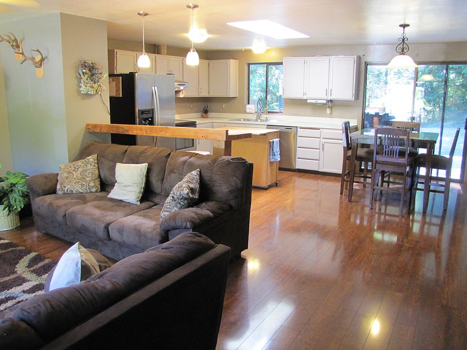 Charming home recently remodeled. Open floor plan with new flooring and trim. Kitchen with new stainless steel appliances overlooks family room with bar top for casual dining. Family room has a cozy fireplace with exquisite Alder mantle and Travertine hearth. Bonus room off main living area offers 245 sq. ft. of space and connects to the mud room and attached two car garage. Just off the bonus room is a quaint space for a den or office. Private gated beach and lake access with boat launch.