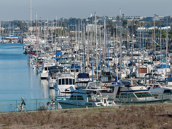 This third floor Penthouse with high ceilings is a perfect place for those who want to live on top of the world. With no neighbors above, you will have more room and less noise from those below. The high ceilings and skylight over the dining area bring in extra sunlight. Cook up a storm on your Jenn-Air appliances with a beautiful breakfast bar. Kitchen drawers are soft close and cabinets are roll/pull out shelves for easy organizing. Primary bedroom has dual closets or shared closets to reflect a more modern homeowner. Primary bathroom has dual vanities, soaking tub & a separate glass frameless shower. Your living area will be cozy thanks to its fireplace that will make you feel at ease as soon as you walk in. You'll also have a private balcony, to barbecue and enjoy entertaining friends or family while taking in the Marina lifestyle and fresh ocean air. If you're looking for some peace and quiet, this is it! A few additional items to note, the second bedroom and pantry closets were designed by CA Closets, newer plantation shutters, engineered hardwood floors throughout, LG washer & dryer with steam cycle, two side by side deeded parking spaces that are close to the elevator, a spacious corner storage locker, guest parking and HOA includes earthquake insurance. The lighting has been upgraded to energy-saving LED including under cabinet lighting in the kitchen. Dimmers on all the lighting create a sense of intimacy and peace. The community offers two pool-spa areas with barbecues. With plenty of nearby walking trails, biking trails and the Marina, this is an ideal place for those who love being outdoors!