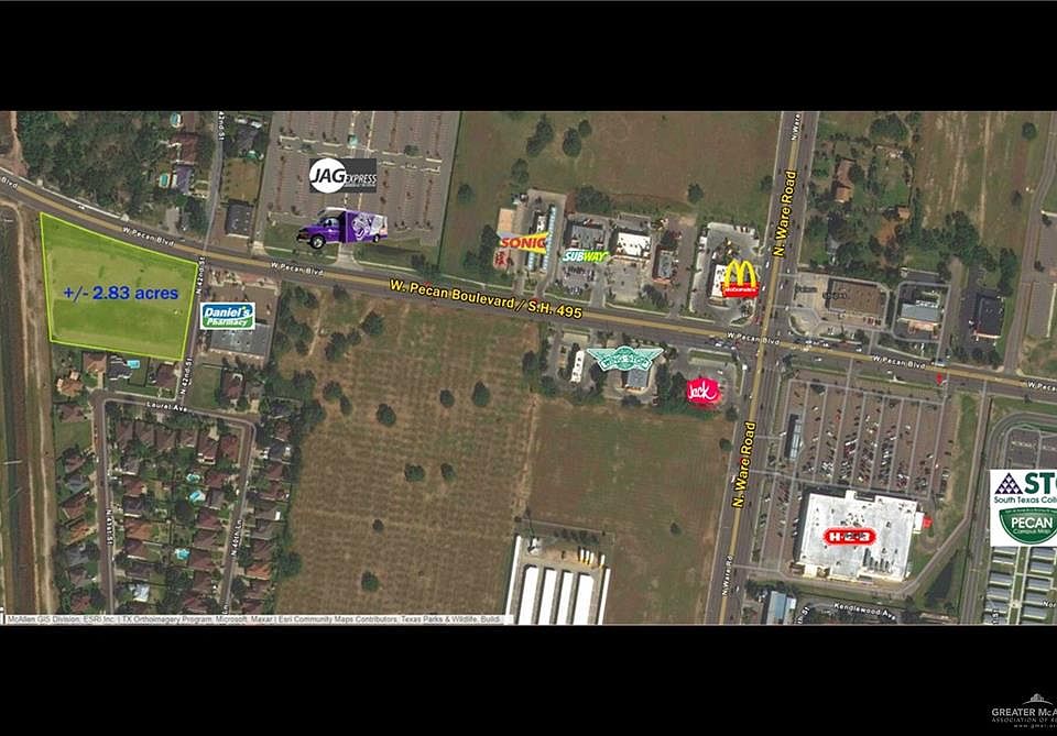 Commercial Opportunity: This land has approximately 423 front feet along the south side of Pecan Boulevard / S.H. 495 and is already developed, it has an 65,149 SF (about 1.5 Acre) of asphalt paved parking lot (as per HCAD) ready to be used, there are preparation for the utilities in place and the building Strip Mall project can be passed to the new owner if desired, or you can make modifications to it because property offers a lot of possibilities. Located in the high trafficked Pecan Boulevard, just between Ware Rd and Shary Rd which is the prestigious Sharyland area. This property has the Zoning classification of C-3 General Business, Site has proximity to shopping, dining and entertainment and is next to Daniel's Pharmacy, Garcia Family Clinic and very close to the STC Jag Express parking lot, also Church's Chicken, Wing Stop and 1/3 of a mile from HEB, just half mile to South Texas College (STC) right in the same street! plus so much more. Seller is motivated,