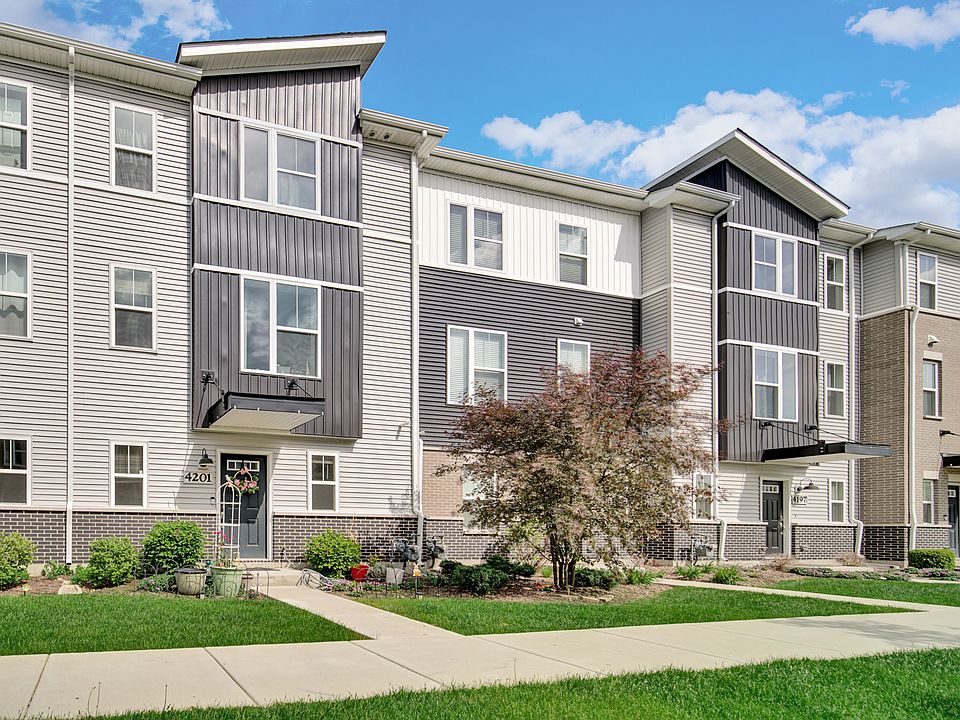 TRI-LEVEL - 2021 Built - LUXURY FINISHES - 204 SCHOOLS - Welcome to a first time rental in Gramercy Square of Aurora on 75th and Route 59! PRIME location that is minutes to Metra, highways, every shopping, grocery, restaurant imaginable. Great neighborhood and school system. MI homes built in 2021. Large dimensions and floor plan - Open concept home with a gorgeous courtyard entry. Lower/entry level includes a family room/office room on the main level + garage and storage. 2nd floor offers a large family room that over looks the largest kitchen builder offered with 42" cabinets, granite counter tops, tile backsplash and stainless steel appliances. Corner pantry is perfect and situated perfectly. Dining area is off the kitchen overlooking the patio for great natural light morning and evening and has additional space for an office nook. 3rd floor offers 3 generous sized bedroom and 2 full bathrooms. Master bedroom has a large walk in closet and a beautiful private bathroom with dual vanity, designer cabinets and an extended shower with tile surround walls. Clean and well maintained. Every bedroom has a ceiling fan. Great big windows. Modern construction is very well built and insulated. Enjoy new construction living in prime location! Income 3x monthly rent. Credit Score 700. No Collections. No Late Payments. Tenant pays Electricity, Gas, Water, Sewer, Trash, Lawn Care & Snow Removal. All internet/cable install and monthly charges paid by the resident. Renters Insurance is required to move-in. Non-Refundable application fee applies for each adult. Garbage Day as per owner is Thursday