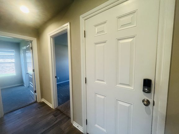 Lovely 3 bed 2 bath 2 car garage with storm shelter, sprinkler, and tankless HWT. Kitchen island is open to Living area with fireplace. Nice walk in pantry.