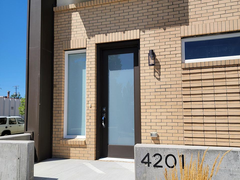 This newer townhouse house has all the features you need to make a cozy home. This 2 bedroom 2.5 bath townhouse has designer finishes and everything that you need to have a great work life balance. 1st floor has a 1 garage attached garage, powder room and entry way with wood floors. Head up to the 2nd floor and find the main living space. Kitchen features gas range, full size fridge, dishwasher and microwave. There is plenty of space for dining and lounging. Large TV and cozy sectional round out the space. 3rd floor has the 2 bedrooms that each have their own en-suite bathroom. That leaves the best for last, our roof top deck with city and mountain views. Come check out this townhouse and you will find your next home! Small dogs are welcome, cats are negotiable. Can be rented fully furnished at an additional fee Owner pays for water and management fee. Tenant is responsible for Gas/Electric and Cable/Internet. No smoking any substance inside the property. Small dogs are welcome.