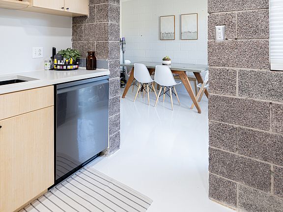 Designer owned and recently remodeled. Quartersawn white ash custom kitchen cabinets and GFRC countertops. White epoxy floors and custom hand made entry door from solid ash. All new dual pane insulated windows. All new doors, hardware and paint. Remodeled bathrooms and upgraded appliances. New paint and smooth wall on all walls and ceiling.