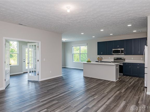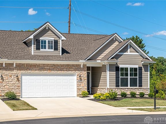 This nearly new Hudson model patio home in Sugarcreek Townships sought-after Centerville Cornerstone Villas is filled with builder upgrades and move-in ready. Situated on Premium Lot 7, this home offers the most beautiful landscaping and an abundant tree-lined lot with no rear or east neighbors for unmatched privacy. Offering 1,773 sq. ft. of single-level living, the home features 3 bedrooms, 2 full bathrooms, and an oversized 2-car garage. The open-concept layout includes a spacious great room, large dining area, and a bright Florida room filled with natural light. The custom kitchen is highlighted by Corian countertops, upgraded cabinetry, new stainless steel appliances, and a new water softener. Wider glass interior doors and custom finishes throughout provide both style and accessibility. The owners suite is a private retreat with a dimmable lighted tray ceiling, dual vanities, and a luxurious tiled shower with built-in bench. Additional windows enhance brightness, custom blinds add a designer touch, and the oversized extended rear patio is perfect for relaxing or entertaining. Every detail has been thoughtfully selected to elevate comfort and convenience. Cornerstone Villas offers true low-maintenance living with HOA-covered lawn care, landscaping, fertilization, mulching, and snow removal. The community connects to hiking trails, parks, ponds, and gathering spaces, all within a top-rated school district. Ideally located near I-675, I-35, and I-75, the neighborhood provides quick access to Wright-Patterson Air Force Base, Wright State University, The Greene Town Center, and Cornerstones extensive shopping, dining, and entertainment. No waiting for your dream home to be built, this upgraded Hudson is loaded with custom options, better than brand new, move-in ready, and a rare opportunity.