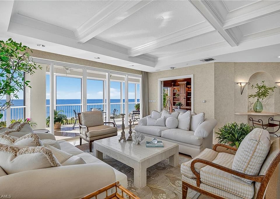 This exceptional 11th-floor residence occupies the coveted 01 stack, offering stunningly gorgeous panoramic Gulf and bay vistas through expansive walls of glass. Ascend the elevator which opens directly into your residence to a welcoming foyer leading to open-concept living spaces designed for both elegance and comfort. Inside, the home is immaculately maintained and fully updated, with custom-designed furnishings and finely crafted built-ins in the primary suite, family room, and den. Every element has been curated for seamless livability, elevated finishes, refined millwork, and a neutral coastal palette that complements the breathtaking views beyond. Two enclosed garage spaces provide convenience and security, while generous terraces capture the rhythm of the Gulf and Naples’ glowing sunsets. Move-in ready, this residence combines timeless design with modern luxury. A million-dollar view and a lifestyle that defines the best of Park Shore living. Le Jardin stands as one of Park Shore’s most admired addresses, a boutique-style tower with only 52 private residences. A true expression of low-density living along Naples’ premier beachfront. From the moment you enter the gated circular drive and elegant porte-cochère, the sense of calm and refinement is unmistakable. The building has recently undergone a thoughtful renovation featuring a resort-style pool and spa, an upgraded fitness center, and a stunning new lobby that welcomes owners and guests with quiet sophistication. Secure under-building garages and 24-hour staffed entry ensure the utmost privacy and peace of mind. Every detail within Le Jardin reflects the essence of coastal elegance, clean architectural lines, mature landscaping, and an atmosphere that feels both intimate and refined. Located within the prestigious Park Shore neighborhood, residents enjoy private beach access and a short stroll to Venetian Village for fine dining and boutique shopping. The community embodies Naples’ distinctive blend of luxury and livability, beautiful, serene, and effortlessly convenient. Convenient location to Venetian Village, Waterside Shops and Artis. Short drive to downtown Naples renowned worldwide for its fine dining and shopping. Easy access to I-75, Naples and Fort Myers airports.