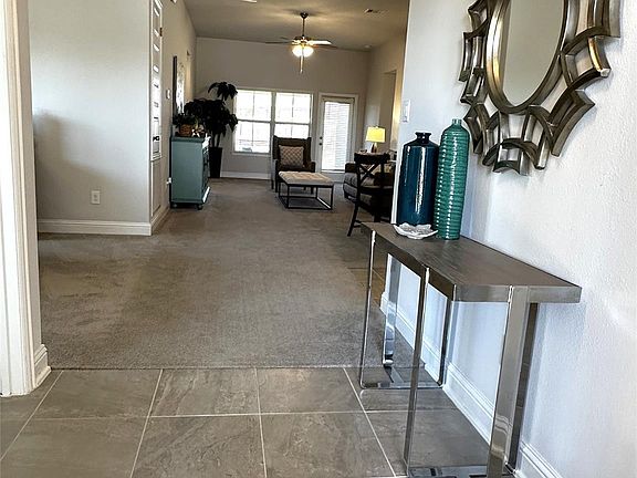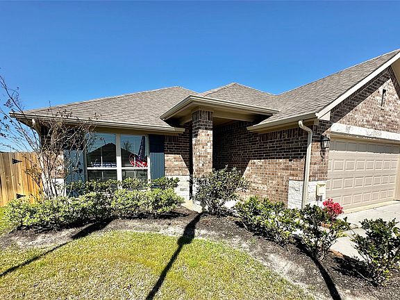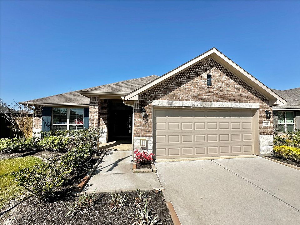 Welcome home to Cobblestone! This beautiful home is currently a model home and is ready for its owner! Situated on a corner, it has ample yard space with a healthy-sized covered patio. Upon walking into the home, you're greeted with high ceilings. The front bedroom, which can also be used as an office/flex room, has glass french doors and a closet. The generous size kitchen has an eat-in kitchen space with a large bar that can accommodate 4 barstools. Laid out as a split floorplan, there are 2 bedrooms on the left and the primary bedroom on the right. Granite in both bathrooms, great closet space, and laundry room off of kitchen and garage. Upgrades Include: Refrigerator, front gutters, 6 zone sprinkler system, garage door opener, herringbone backsplash, lot premium and seperate primary shower.