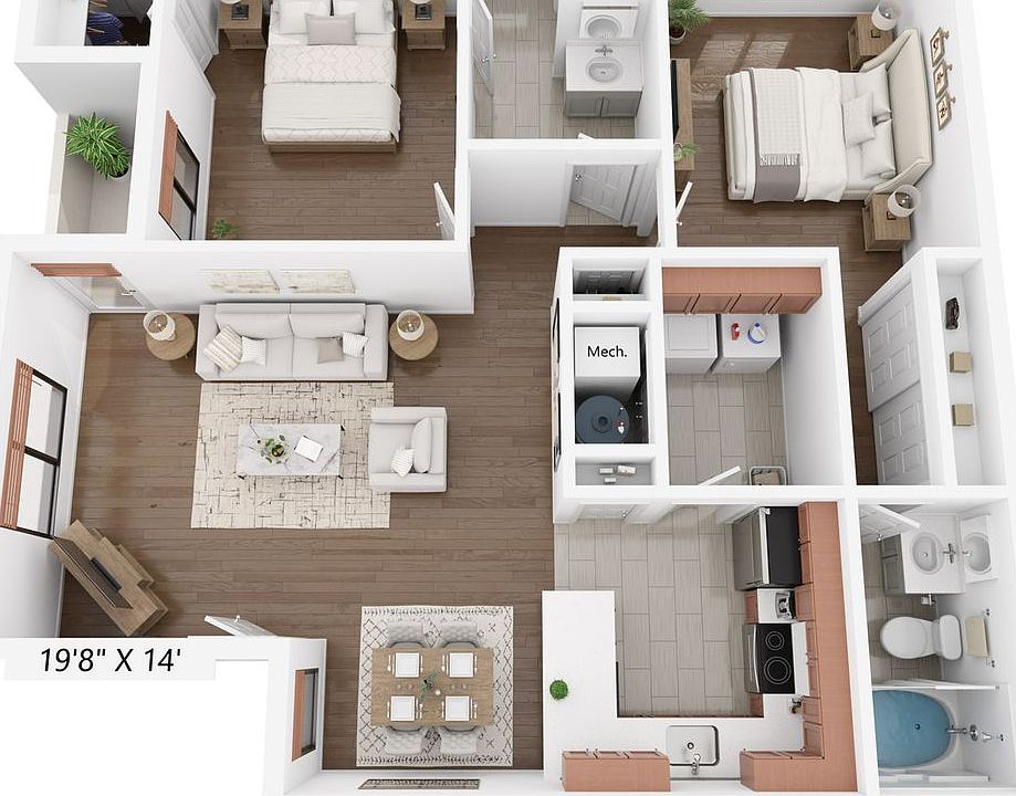 - Exterior features: 9' Ceilings Throughout, Flooring: Wood, Friendly and Attentive Community Manager, Keyless Entry Door Locks, Plenty of Guest Parking, Quartz Countertops, Six Month Leases Available, Walk In Bedroom Closet