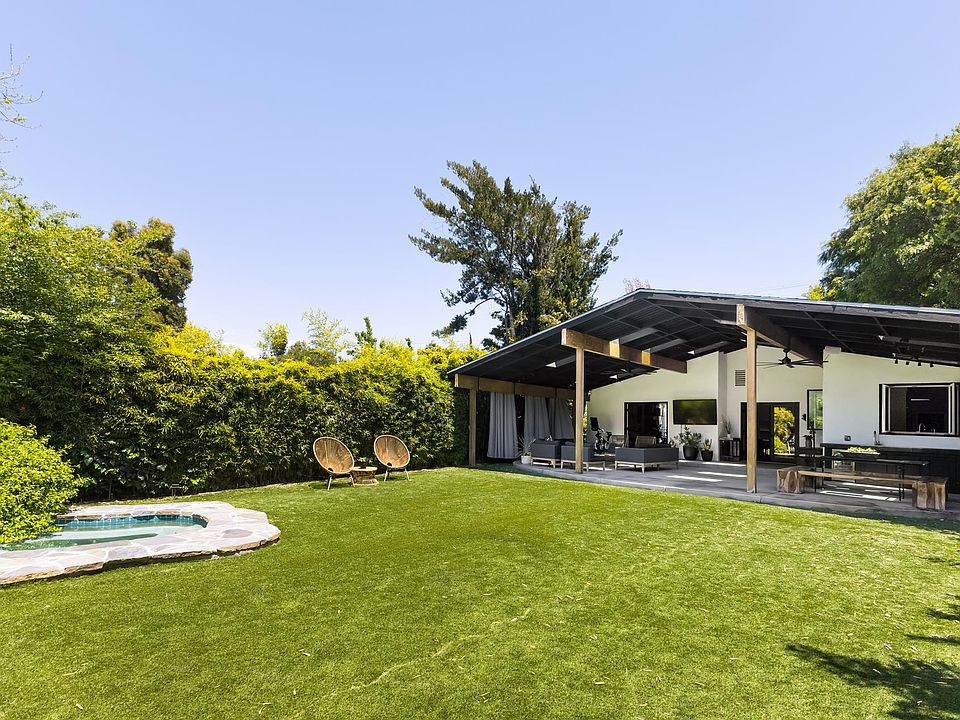 Updated Sherman Oaks home with pool and backyard oasis! Nestled behind gates in a coveted "South of Ventura Blvd" neighborhood, this delightful single-level home has been stylishly remodeled and designed for indoor/outdoor entertaining. The open floor plan welcomes and draws you into the well-defined living, dining, and family room areas, which open to the incredible outdoor areas. Imagine spending summers under the immense covered patio, which features an outdoor living room and an outdoor kitchen with dining area, built-in BBQ, sink, mini-fridge, and pass-through window. The backyard with a beautiful sparkling pool and spa and drought-tolerant turf lawn surrounded by lush hedges, creating a heavenly, private escape. Inside, the updated kitchen features quartz counters and stainless steel appliances, including dual ovens and a wine fridge. There are 3 spacious bedrooms and 3 full bathrooms, including the lovely primary suite with a sun-filled spa-like bathroom featuring dual sinks, shower, and soaking tub. A wonderful home inside and out, with an unbeatable location, close to restaurants and shopping on Ventura Blvd and easy access to freeways, schools, and more!