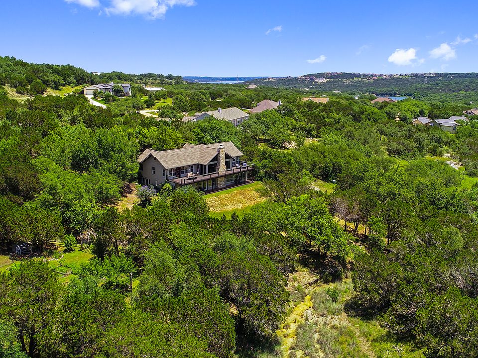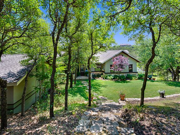 Peaceful country setting just 10 minutes from shopping, dining, golf, and other amenities. The craftsmanship of this Colorado Lodge style home seamlessly blends into the Hill Country Landscape of Travis Settlement along Little Bee Creek. 4 bedroom, 2.5 bath home that welcomes you with natural light from floor to ceiling living room windows surrounding a stunning stone fireplace. The home was built to capture the views of the Texas Hill Country and tranquility of the 1.6+ acre property with wet weather creek at the rear. Open living room with handcrafted wood beams, dining room, and kitchen create amazing entertaining spaces that flow perfectly onto the main level patio. Downstairs has additional bedrooms, a secondary living area, and artist studio/flex room with floor to ceiling windows. Enjoy a glass of wine as you sit under the stars in your 12 vine vineyard. A large lush garden with raised beds, fruit trees, and beautiful front courtyard are surrounded by a deer fence to protect all of your plants and crops. The rest of the property is left for wildlife to explore and wildflowers to bloom, while you have many areas to sit and enjoy nature by the creek. Community lakefront access on Lake Travis with boat ramp.