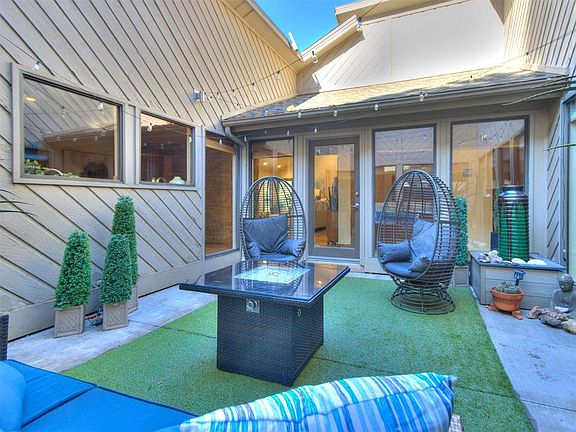 Discover a one-of-a-kind contemporary retreat centered around a stunning open-air atrium that brings natural light and serenity into every corner of the home. Thoughtfully designed so that nearly every room overlooks this captivating centerpiece, the layout feels both modern and peaceful, creating a true indoor-outdoor living experience. The front door opens into a spacious living room with warm natural light and a charming side nook-perfect for reading, relaxing or customizing into your ideal flex space. Just off of the living room sits the dining room, which flows seamlessly into the kitchen for easy entertaining. The kitchen, breakfast area, and family room are anchored by a beautiful stacked-stone, double-sided fireplace, The family room features vaulted ceilings, built-in bookshelves, and an impressively large closet with shelving. Around the corner, an expansive additional nook provides an ideal office, creative studio or lounge area. The primary suite is a relaxing haven with an en-suite bath complete with claw-foot tub and walk-in shower. A second bedroom and full bath offer great flexibility for guests or daily living. Outside, the backyard features a patio surrounded by lush landscaping - perfect for morning coffee, quiet evenings, or entertaining friends. This home is truly unlike anything else, offering architectural character, functional spaces and soothing natural light throughout.