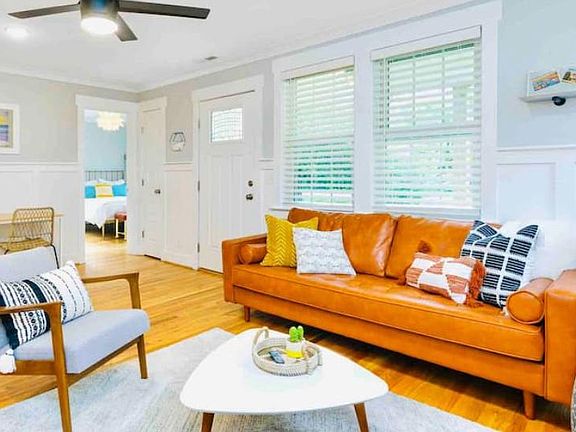 Newly renovated, this house is set up to ensure a relaxing, comfortable stay. From the quaint rocking chair front porch, to the fully fenced backyard and patio. The kitchen is fully outfitted for all cooking styles with a gas range, ample cookware and serveware. Keurig, quality drip coffee maker and teapot supplied. New hybrid, memory foam bedding and quality linens along with a private office area for working remotely.