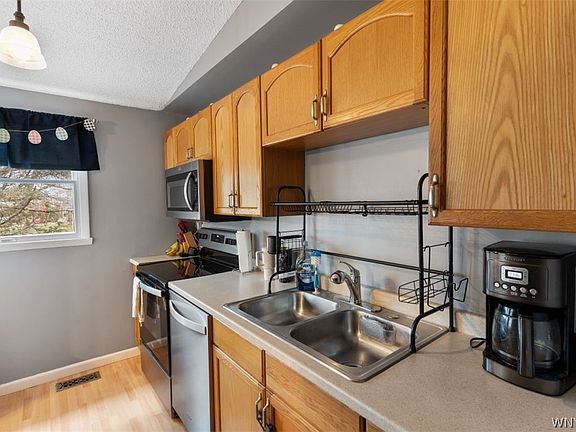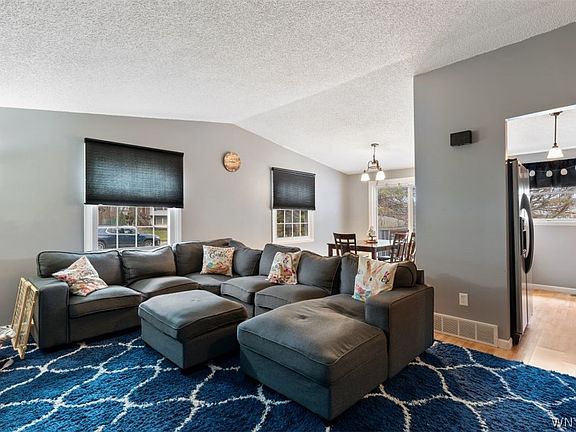 Welcome to this delightful and spacious split level 3 bedroom 2.5 bath home with 2.5 car attached garage. Enter the main level with open concept to the Livingroom adjoining the dining room with sliding glass doors leading to small deck. Head down a level to entertain in your large family or Rec room complete with a wet bar, half bath and outside patio access with hot tub and fenced yard. The bonus room in the dry basement level is ideal for various uses! Home offers an incredible blend of comfortable living space with close proximity to thruway and conveniences! Updates include new roof tear off, sump pump, and paint! Newer stove, microwave and dishwasher as well! This beautifully maintained home is just too special to miss!