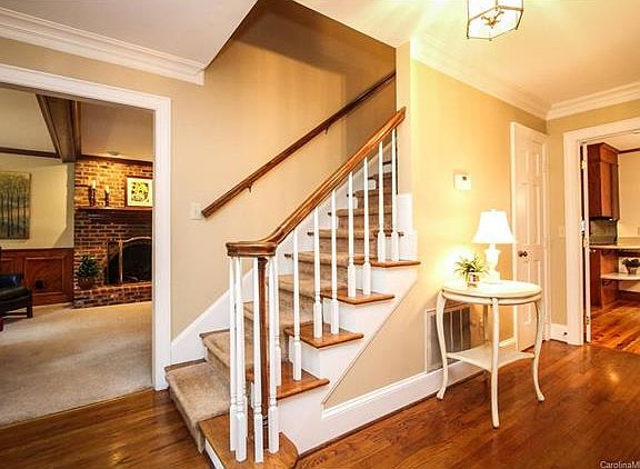 Handsome traditional home on over 1/2 acre which is beautifully landscaped & very private. The foyer, living room, dining room & kitchen have hardwood floors. Handsome den features masonry fireplace with arched opening, wainscot & bay window. Kitchen with breakfast area opening to a large two tiered deck overlooking the fenced yard & stone patio. It's as pretty as a park. All four bedrooms up plus a large rec room up. Good condition & well maintained and is ready for your buyer's updates.