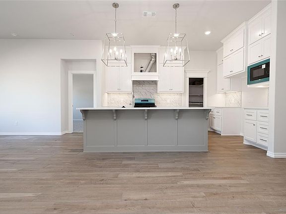 This Kamber floor plan includes 1,905 Sqft of total living space, which includes 1,750 Sqft of indoor living space & 155 Sqft of outdoor living space. This charismatic home offers 3 bedrooms, 2 full bathrooms, covered patios, a utility room, & a 2-car garage with a storm shelter installed. The living room presents high ceilings with 4 puck lights, a ceiling fan, wood-look tile, a corner gas fireplace surrounded by our elegant stacked stone detail, and 3 large windows. The high-end kitchen supports a large center island, stunning pendant lighting, custom-built cabinets to the ceiling with cabinet hardware installed throughout, stainless steel appliances, decorative tile backsplash, 3 CM countertops, and a large walk-in pantry. The large primary suite spotlights a sloped ceiling detail with a ceiling fan, windows, & our cozy carpet finish. The prime bath offers a stand alone tub, a dual sink vanity, a walk-in shower, a private water closet, & a HUGE walk-in closet! The covered outdoor living supports a wood-burning fireplace, a gas line, & a TV hookup. Other amenities include our healthy home technology, a tankless water heater, R-44 insulation, a whole home air filtration system, & so much more!