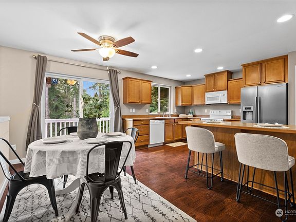 This charming 2 bed, 1 bath abode offers lots to love with easy access to local amenities in the heart of Bremerton! This home is situated in a quiet and peaceful setting, offering a comfortable retreat from the hustle and bustle of city life. Inside you will find a warm and welcoming open living/kitchen area, primary suite on the main with full bath, and easy access to your huge backyard deck. Downstairs a second bedroom and huge family room offer flexible space. Tons of flat yard space for outdoor fun and gatherings in the front yard. Back yard features a trex deck, shed, and terraced garden beds. Located just minutes from shopping, bases, ferries, and walking trails. Assumable FHA loan @3% interest, $340k...