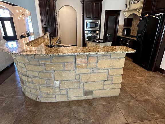 Large kitchen includes two ovens, gas stove, microwave, large pantry, dish washer, tons of storage, and a center island sink. The massive granite countertop bar is perfect for game day parties or serving your family during the holidays!
