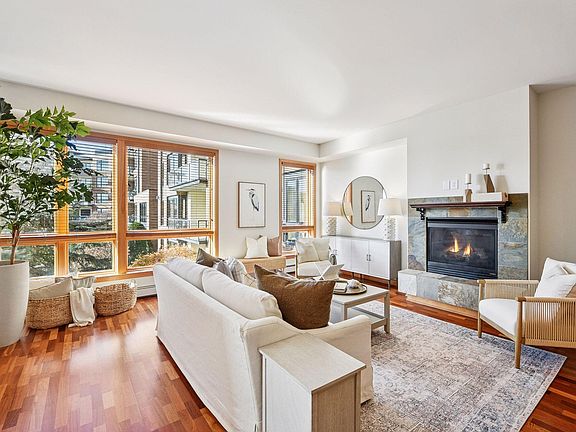 Now selling at The Mist on Lake Minnetonka! A warm and welcoming 2 bedroom home on the 2nd floor is now available for sale for the first time since the building was built. Enter the living room to find a spacious gas fireplace trimmed in stone, perfect for cozy and cheerful evenings.The adjacent kitchen is a warm and comfortable place to entertain, with its large eat-in island, elegant stone backsplash, and the cherry cabinets and wood floors. A separate dining room with newly updated lighting leads you to the balcony with views of Lake Minnetonka.