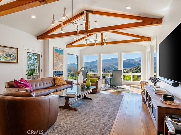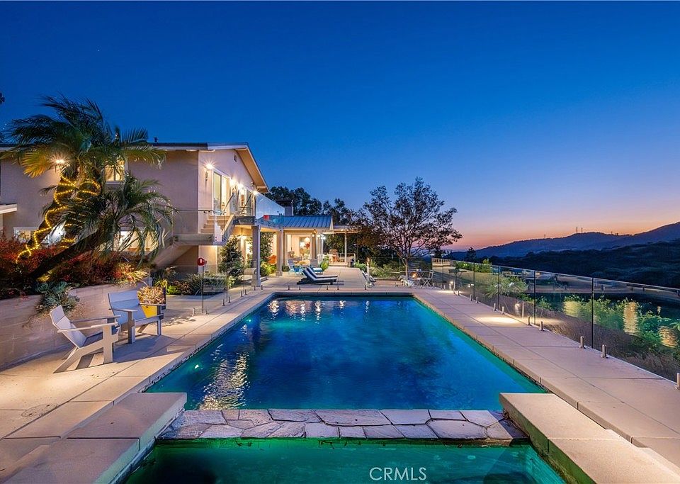 One of the true jewels of Padua Hills, the original 1938 estate was completely re-built in 2000 by renowned architect Fred McDowell, with major enhancements in 2020 by luxury design/build firm EPIC Design. This property is among North Claremont’s most exceptional offerings. Capturing unobstructed views of the Claremont Wilderness Preserve, Johnson’s Pasture, the San Gabriel Mountains, and distant city lights, it offers a lifestyle defined by thoughtful design and stunning surroundings. The living room is a dramatic setting, with expansive windows filling the space with natural light and framing sweeping vistas. Post-and-beam inspired design is elevated by reclaimed pine beams from the former Anheuser-Busch factory in Los Angeles. With soaring ceilings, the living room accommodates both intimate gatherings and grand entertaining. The kitchen is both a culinary showcase and architectural statement, outfitted with premium appliances including a Wolf oven and range, additional Wolf oven, Sub-Zero refrigerator, and Bosch dishwasher. Marble counters and a designer backsplash add elegance, while the expansive island doubles as centerpiece and breakfast counter. A sunny breakfast nook overlooks the front yard, and the adjoining family room with custom built-ins offers a warm everyday space. The residence spans five bedrooms and four and a half baths. Two upstairs bedrooms share a west-facing balcony with incredible views, while the downstairs bedrooms each enjoy en suite baths. A detached guest suite adds versatility, ideal for extended family, guests, or a home office. The main-floor primary suite is a luxe retreat with sliding doors framing incredible views. Its spa-inspired bath features dual sinks, heated floors, soaking tub with picture window, and walk-in steam shower, plus a boutique-style closet with mechanical carousel. Outdoors, over half an acre makes it one of the largest hillside lots. The dining pavilion has a soaring ceiling with recessed lighting and heaters, while a nearby sitting area with stone fireplace is perfect for cool evenings. A large deck extends from the primary suite, adjacent to the resort-style glass-fenced pool and spa, with a path to a terraced area and lemon orchard. Beyond the pool, a flat lawn is surrounded by mature landscaping and provides versatility for play, gardening, or entertaining. This estate combines modern architecture, luxurious appointments, and a natural backdrop—an offering without equal in Claremont.