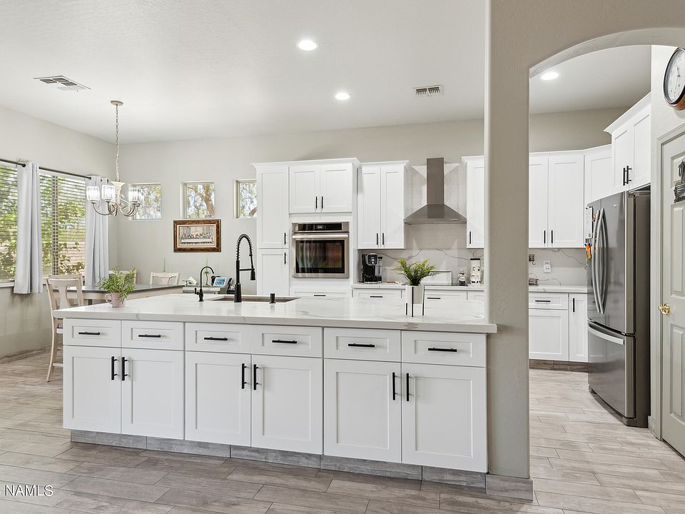 Discover this fully remodeled move-in ready home. It offers an open floor plan w/a den that includes a full wet bar, perfect for an in-home office. Freshly painted interior & exterior, new wood-like tile throughout, fully updated kitchen creating a modern feel. Kitchen features white cabinets, black hardware, & a large island w/ quartz countertops. Spacious dining & living area showcases large sliding glass doors that let in natural light. Additional upgrades include a new RO water filtration system, water heater, water softener, & a two-year-old HVAC. The main bedroom offers an en-suite bathroom w/a custom shower, walk-in closet, & double sinks. Large backyard w/outdoor sink.