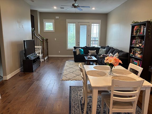 Townhome with wood flooring, granite counters in the kitchen and bathrooms. The kitchen area is open and bright with a walk in pantry, kitchen has a spacious island w/eating space that overlooks the living area. All the bedrooms have a private bathroom. Walking distance Northgate and Kyle Field. Four assigned parking spaces and extra visitor parking.