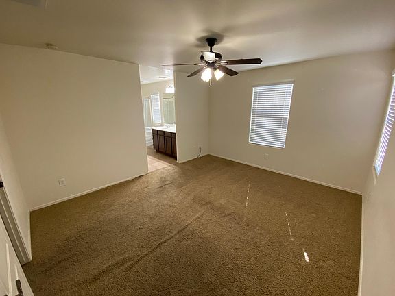 Well maintained 2 story home, Upstairs: 3 bed, 2 bath, Laundry (W/D included). Downstairs: 1/2 Bath, Living, Dining, Kitchen (Range, Microwave, Dishwasher, Refrigerator included). 2 car garage, granite countertops, new stove, new dishwasher, easy to maintain side yard/patio, corner lot, across the street from community park, 3 community swimming pools. Close to freeway, close to Mesa Gateway Airport.
