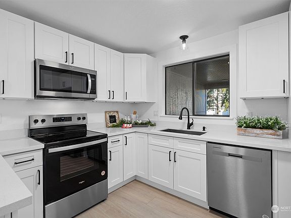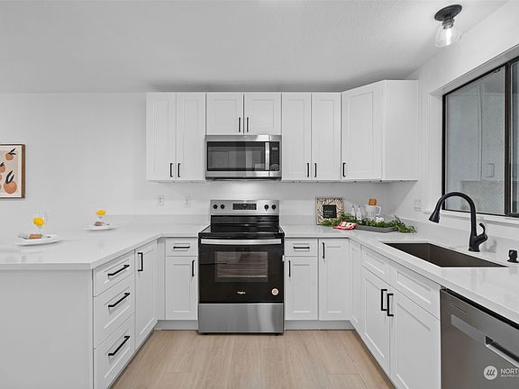 Welcome to this beautifully remodeled top floor end-unit in Factoria, Bellevue! Live-large in the open-concept gourmet kitchen with new cabinets, SS appliances, and luxury quartz countertops that flow into the dining room and living room with vaulted ceilings, plenty of natural light, and private balcony! Enjoy the new LVP flooring, light fixtures, fresh paint throughout, and remodeled bathrooms with luxury tile. Relax in the primary suite complete with ensuite bathroom, walk-in closet, vaulted ceilings, and access to the private balcony. Don't miss the bonus room, perfect for a home office, and the huge private garage w/ storage just steps away. Conveniently located by restaurants, shops, DT Bellevue, I-90, 520, and more. Truly a must-see!