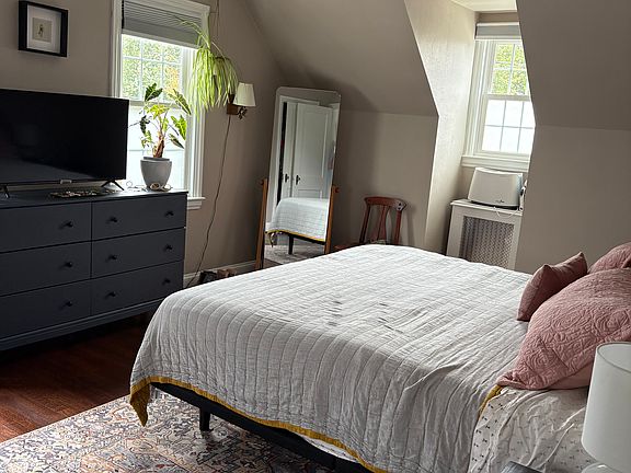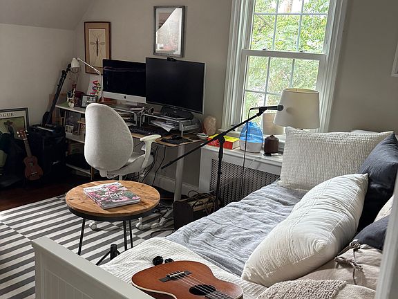 This is a light-filled, fully furnished, newly renovated standalone two-bedroom home in the historic Hyattsville neighborhood, known for its warm and welcoming community. The upstairs space available for rent includes a master bedroom with a king-sized bed and an office with a daybed that converts into a king perfect for guests or a home workspace.