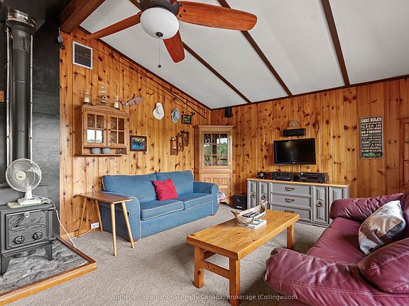 ** BOAT/ATV ACCESS ONLY ** Located on a picturesque 1.33-acre lot with 163 feet of pristine shoreline, this family cottage on Go Home Lake offers the perfect blend of comfort, functionality, and natural beauty for year-round enjoyment. The open-concept living space features a vaulted ceiling, cozy woodstove, and walk-out decks on two sides that provide breathtaking views of the water. The interior layout seamlessly combines the living room, dining area, and kitchen, creating a spacious and inviting atmosphere ideal for entertaining or family gatherings. Designed for winter use, the cottage includes a heated water line and an insulated, spray-foamed foundation, ensuring comfort in every season. The property boasts three docks for ample boat space and water activities, complemented by a flagstone walkway, firepit, and sandy beach area that enhance the waterfront experience. Behind the cottage, a newer 32 x 24-foot workshop/sleeping cabin awaits your personal touch, currently set up with two bedrooms and a potential bathroom, while the back portion serves as a workshop with a garage door for you snowmobiles and ATVs. There is also the potential to add stairs up to the loft area over the workshop. Accessible year-round by boat in warmer months and by ATV or snowmobile via a year-round trail in the shoulder and winter seasons, the cottage is just 10 minutes from the marina by boat and 20 minutes by ATV or snowmobile. The surrounding trails provide excellent opportunities for hiking and mountain biking, especially in the fall when the leaves turn vibrant colours. Go Home Lake's beautiful shoreline, with over 50% being Crown land, offers endless exploration opportunities, including waterfalls to visit and access to Georgian Bay through the local lake club.