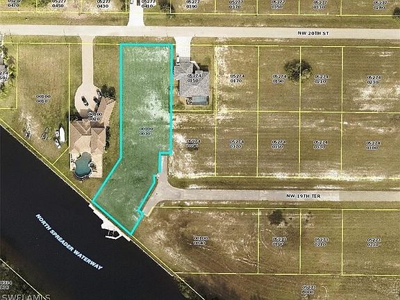 One of the largest DIRECT ACCESS SAILBOAT lots with almost 3/4 acre on the North Spreader with 100 feet water frontage, unblock-able preserve view, composite dock with Captains walk and a 10,000 lbs lift already in, an exceptional opportunity for your custom dream home on this expansive lot, 31,230 sqft site nestled directly along the picturesque North Spreader Canal in Cape Coral FL. Enjoy this exceptional big lot with SW exposure at water frontage and nature preserve across so no structure can be built across ensuring tranquility & privacy. Seawall is in place, built in 2010 See supplements for survey and dock plan