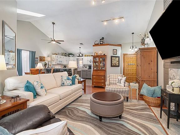 Beautiful 2-bed, 2-bath home featuring an open concept design with soaring vaulted ceilings and a cozy gas log fireplace. The bright sunroom offers a perfect retreat year-round. Spacious bedrooms boast large closets, providing ample storage. Recent updates include a new roof installed in Nov 2021, a 2-year-old HVAC system, and newer carpets in the bedrooms (2-3 years old). This well-maintained home is move-in ready and offers comfort, style, and modern conveniences.