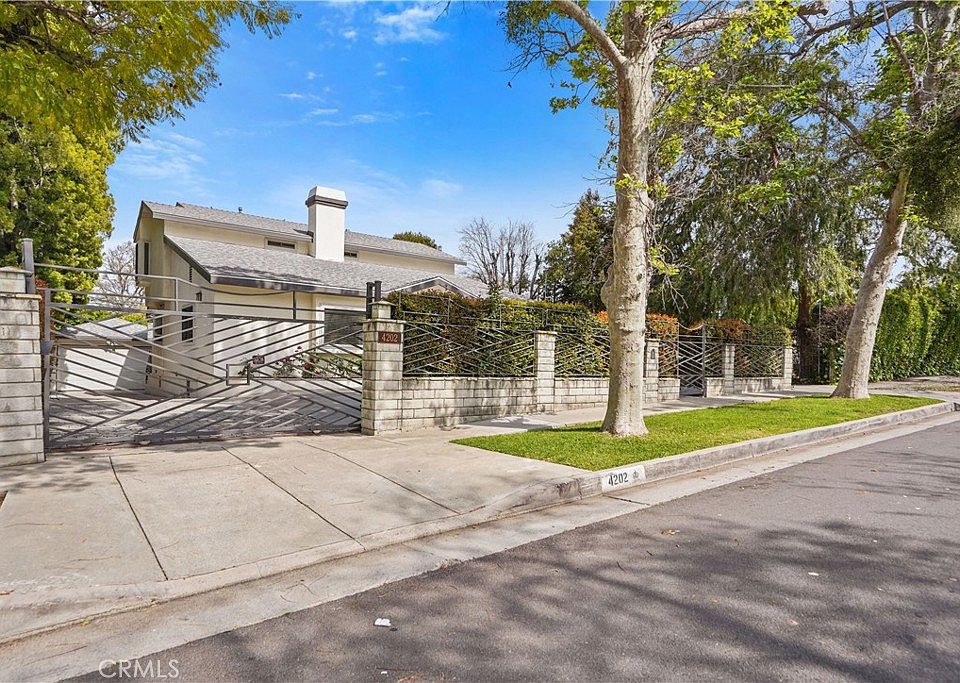 Great South of Ventura Blvd location walking distance to trendy shops and fine restaurants. This 5 bedroom, 4 bathroom family homes is just under 3000 Sqft, set behind electric gates on a huge 8850 Sqft private lot with parking for 6 or more vehicles. The living room and formal dining area features hardwood floors, fireplace and built-in cabinets. The spacious primary suite features a balcony, fireplace, large walk-in closet, bathroom with dual sinks and an oversized spa tub. The 5th downstairs bedroom can be used as a home office or convertible den. All windows and roof have recently been replaced. Galley style kitchen with breakfast nook opens to a spacious family room with fireplace that overlooks an amazing private backyard ideal for entertaining and features 2 covered patios, Built-in BBQ, grass area, fruit trees and 40 ft pool with raised spa.