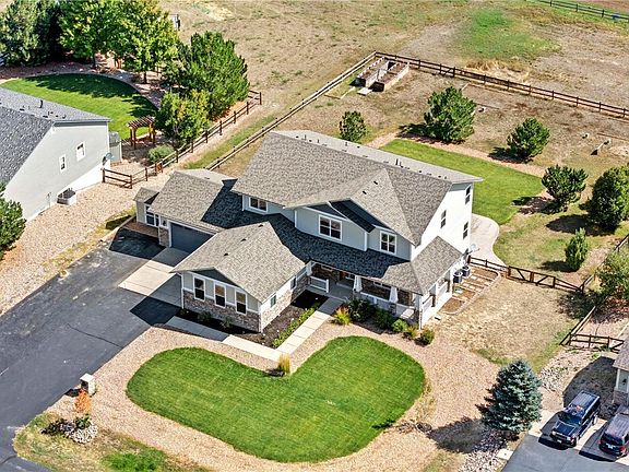 Experience the best of space and warmth in this must-see, 5-bedroom, 6-bath residence—priced to sell. Set on nearly an acre in Spring Valley Ranch, this home backs directly to Spring Valley Golf Course, creating a serene backdrop and breathtaking views from the covered back deck that you’ll enjoy year-round. Upon entry, you’re welcomed by an office/sitting room and a formal dining room. Natural light floods the living space through large windows adorned with plantation shutters. The gourmet kitchen boasts granite countertops and ample storage, perfect for culinary enthusiasts, everyday living, and effortless entertaining. The main level includes a non-conforming bedroom and a newly remodeled half bath that’s plumbed and ready for a shower/tub addition. Convenience is built in with washer/dryer hookups on every level of the home. Upstairs, you’ll find five bedrooms, each with on-suite access to its own bathroom, including a Jack-and-Jill shared by two of the rooms - ensuring privacy and convenience for residents and guests. Recent upgrades include an electrical panel sized to support a future outbuilding and an EV charger in the garage. Step outside to the flat, private backyard with an expansive stamped concrete patio - an ideal spot for outdoor relaxation. Here, a private hot tub awaits, providing a perfect retreat with panoramic views of the golf course and surrounding landscapes. Nearby, a raised bed invites gardening enthusiasts to cultivate their favorite plants. The convenient 4-car garage ensures easy access and plenty of space for toys alongside a practical storage shed for outdoor equipment. Discover the ultimate blend of luxury, space, and natural beauty in Elizabeth’s premier golf course community.