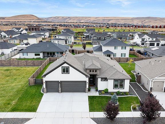 MLS# 288452 Welcome to this like-new, beautifully appointed home in Goose Ridge Estates, offering all the essentials on one level — plus a versatile bonus suite with a full bathroom and its own mini-split system for year-round comfort. This flexible space can serve as a guest suite, second primary bedroom, office, playroom, or hobby space — the choice is yours!As you enter, you’ll immediately notice the wide entryway, raised ceilings, elegant crown molding, and abundant natural light streaming through the large windows. The great room features a stunning floor-to-ceiling tiled fireplace, creating a warm and inviting atmosphere that flows seamlessly into the open kitchen and dining area.The chef’s kitchen is bright and airy, featuring a large island perfect for gathering, Frigidaire stainless steel appliances, soft-close cabinetry, quartz countertops, and plenty of workspace for cooking and entertaining.The spacious primary suite includes a tray ceiling with accent lighting, a luxurious en-suite bathroom with a soaking tub, walk-in tile shower, and quartz countertops with dual undermount sinks. The walk-in closet offers generous storage for all your wardrobe needs.Throughout the home, you’ll find hard-surface flooring in the main living areas, tile flooring in the bathrooms, and neutral designer finishes that create a perfect blank canvas for your personal style.Step outside to a covered back patio and enjoy your private yard with full block fencing and iron gate. You’ll also appreciate the beautiful green space next door — no immediate neighbor and a scenic open view that you don’t have to maintain!Located in the thriving Badger Mountain South community, this home offers access to nearby parks, walking paths, green spaces, and the Country Mercantile — all just minutes away.This home truly blends comfort, quality, and versatility — ready for you to make it your own today!