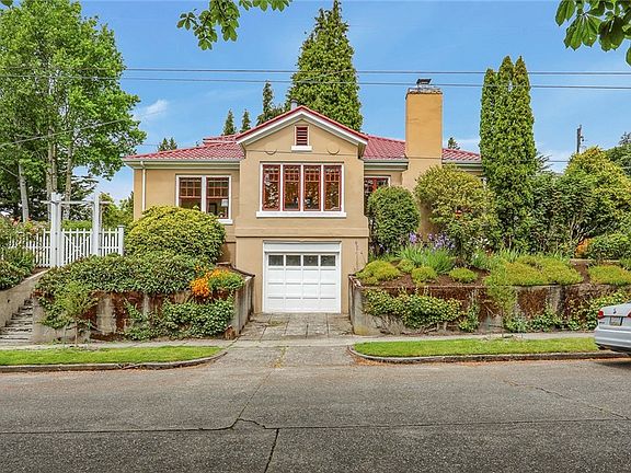 Welcome to this charming 4 bedroom, 1-3/4 bath home nestled in the heart of Wallingford. This spacious 1923 Mediterranean Gem sits high up off the street for privacy, with southeast exposure for sunshine all day long. The huge lot size can host the urban gardener in you and is perfect for pets and play. The right spaces are here, full of good energy & brimming with potential for easy lifestyle enhancements and is ready to welcome new beginnings. Much period charm is still intact, hardwood floors, wood-burning fireplace, abundant storage, 2-car tandem garage for that car you won't need. Steps away from coffee shops/restaurants and all the iconic lifestyle that makes Wallingford the place to be. Walk Score is 93, a true Walker's Paradise!
